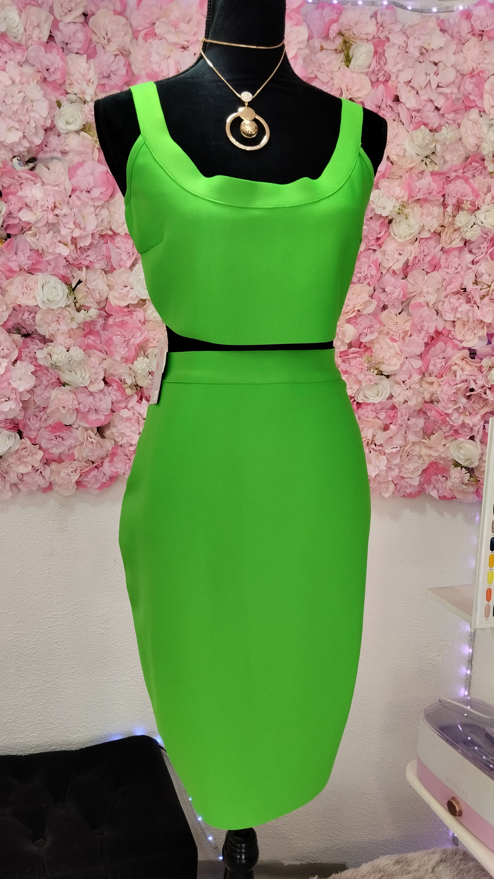 Conjunto falta y top neón